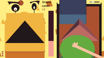 Use the LEFT MOUSE CLICK to drag the shapes found on the right side into the machine's mouth. (don't need to hold it or click, only drag and drop)